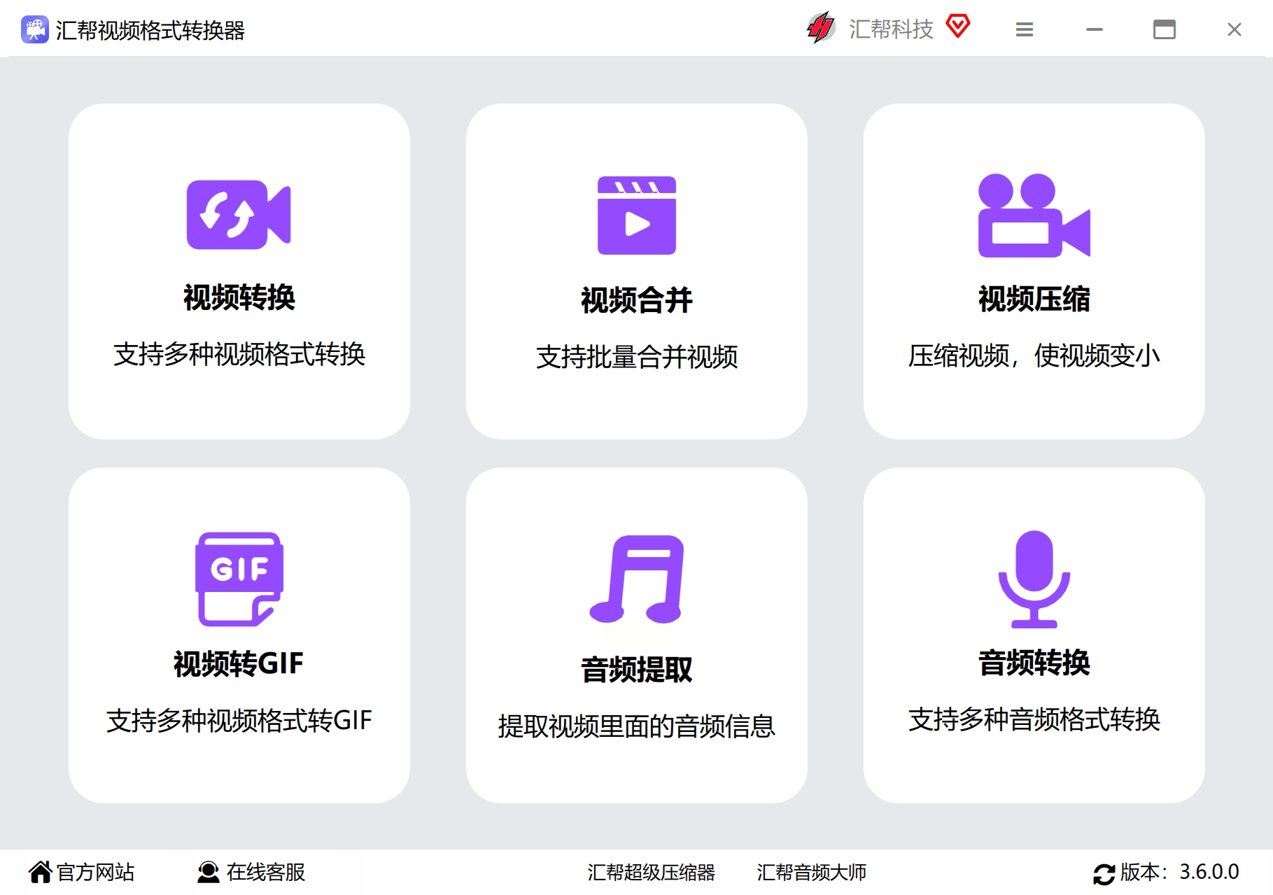安装好后双击图标,你会看到一个很清爽的界面。别被那些功能按钮吓到,咱们今天只用最中间那个【视频转换】功能,大胆点进去!