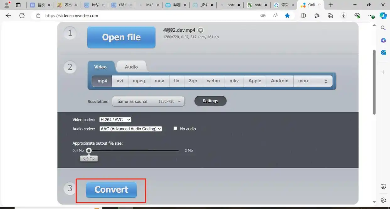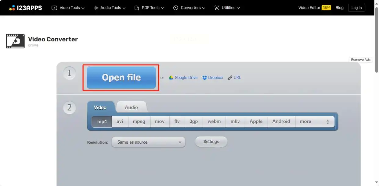 步骤一:访问Online Video Converter网站。在它的主页上,寻找“Open File”或类似的按钮,点击并上传你的视频文件。