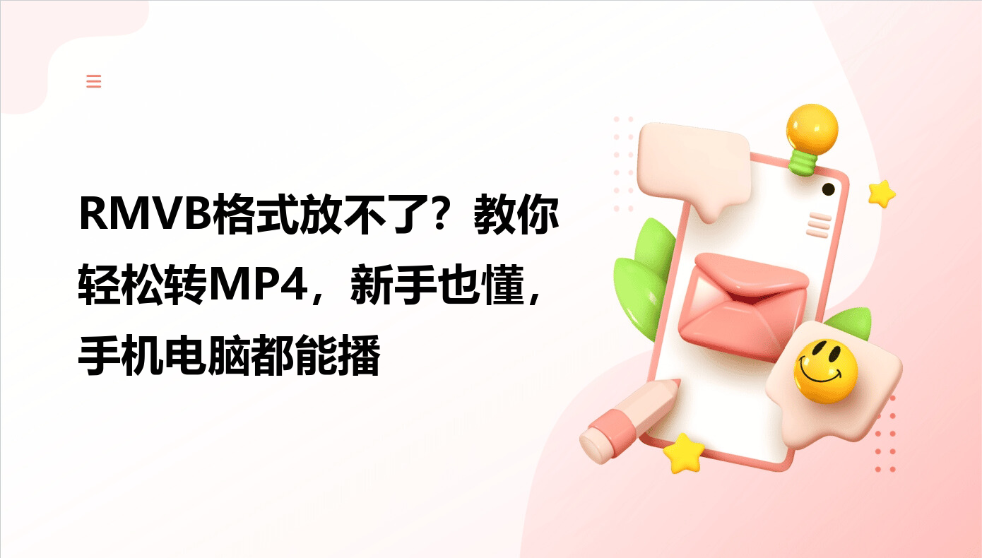 你是否在电脑角落发现了一些以“.rmvb”结尾的视频文件,却无法用常用播放器打开?或者在整理旧资料时,被这种“复古”格式绊住了手脚?别担心,这不是你一个人的困扰。RMVB格式曾因出色的压缩技术在网络带宽有限的年代风靡一时,但如今,兼容性更强的MP4格式已成为绝对主流。无论是上传到社交媒体、在手机平板上观看,还是用剪辑软件进行二次创作,MP4都是更畅通无阻的选择。如果你正为此烦恼,接下来的内容将为你扫清障碍,用几种清晰易懂的方法,帮你把那些“沉睡”的RMVB文件,轻松唤醒为随处可播的MP4。
