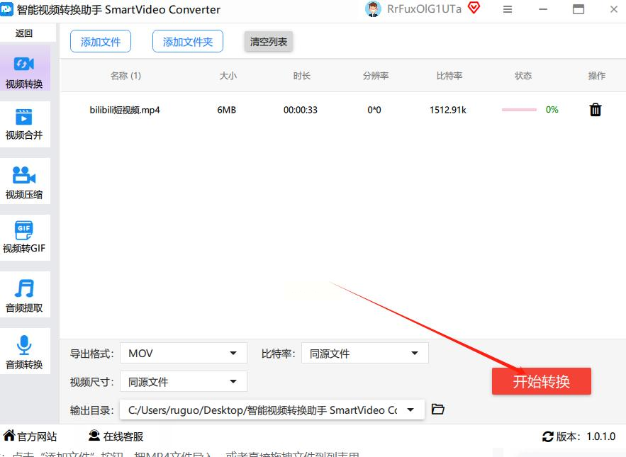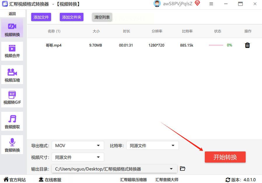 选好文件后,格式列表里选"MOV",有些平台还能调分辨率,比如720P/1080P,根据需要选。