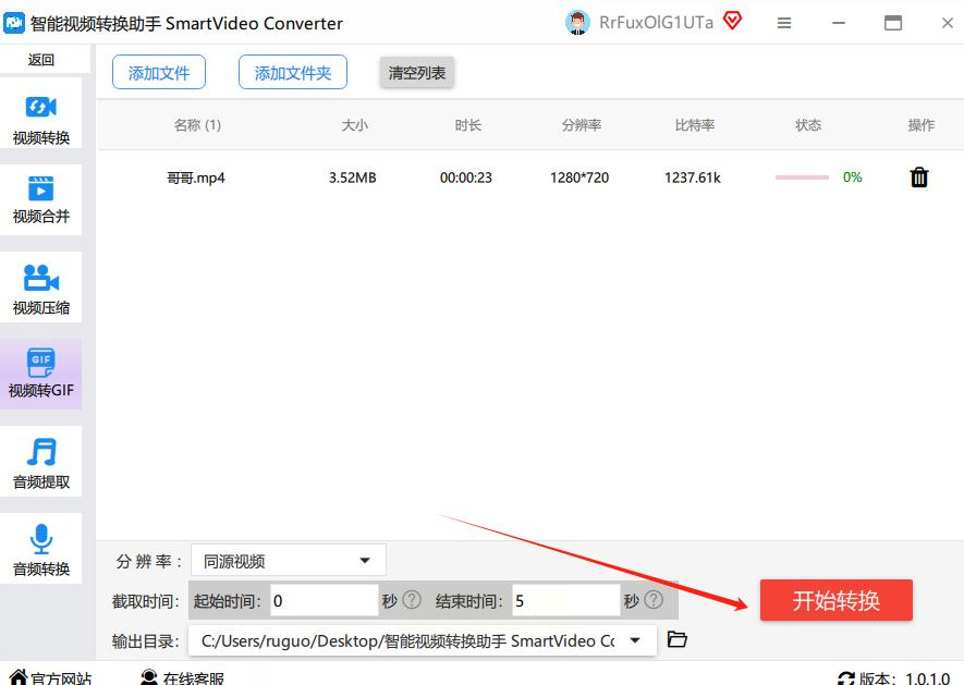 点右下角的「开始转换」,静静等进度条走完(一般10秒内搞定,4K视频可能稍慢),转换完成后去「GIF小站」文件夹就能找到你的GIF啦~
