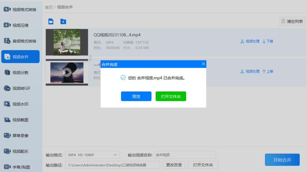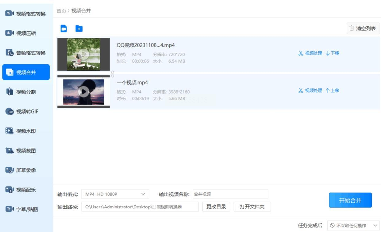 5. 开始合并并下载:设置好后,点击“开始合并”按钮,等软件处理完视频,会出现“合并完成”的提示,然后点击“下载”按钮,就能把合并好的视频保存到电脑里了。