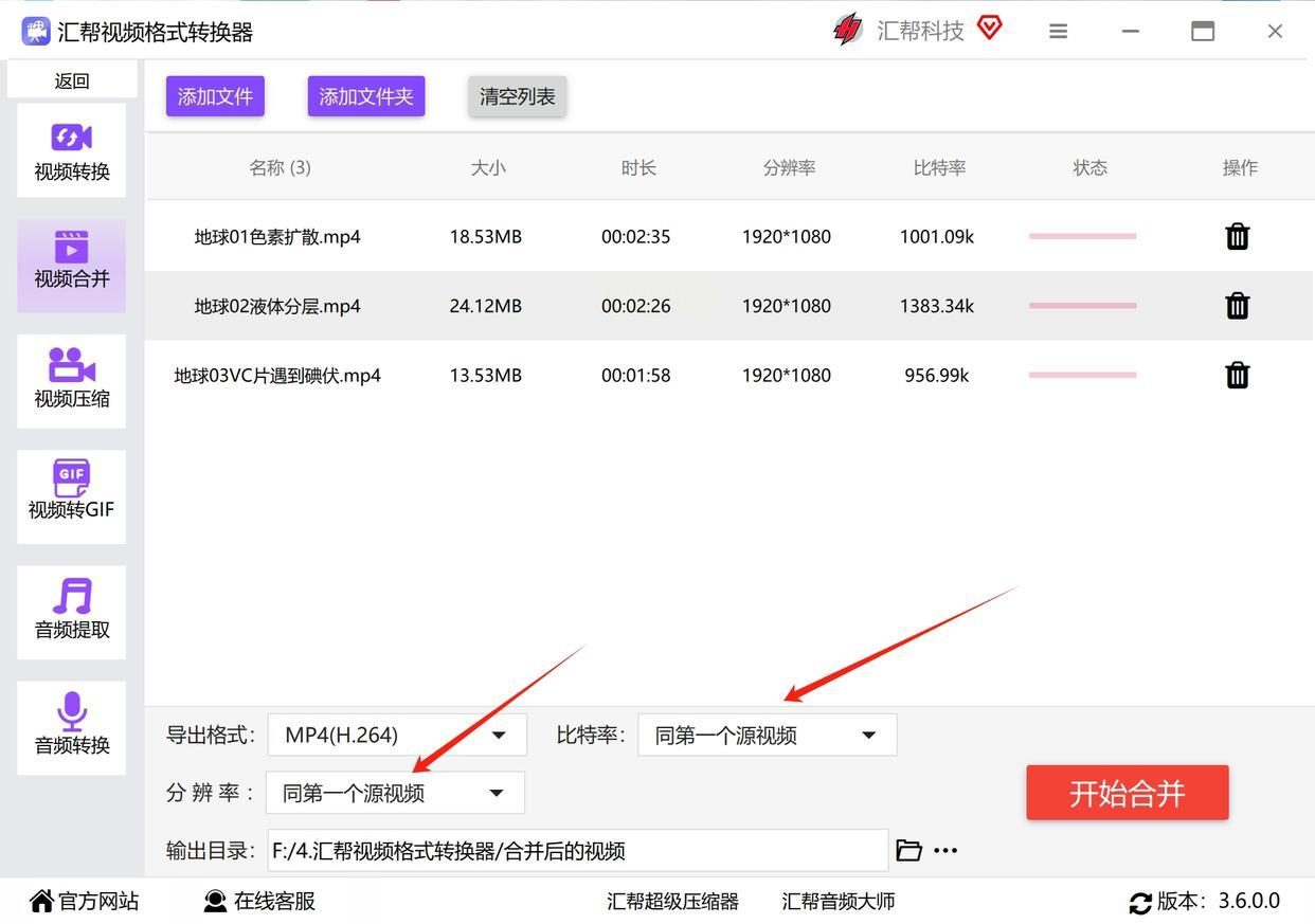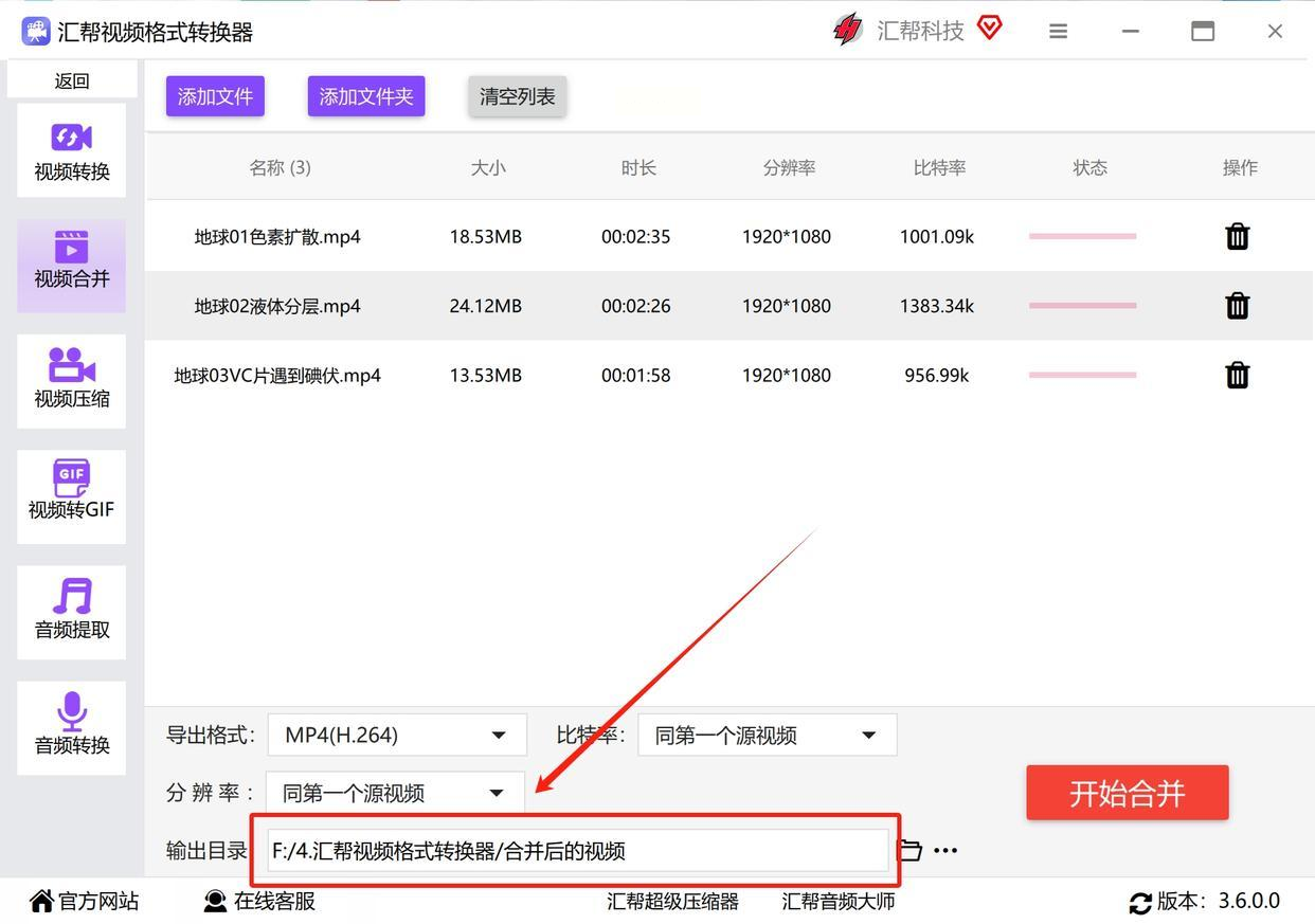 6. 开始合并:所有设置都完成后,点击右下角醒目的“开始合并”按钮,软件就会开始处理视频了,你可以看到进度条显示合并的百分比,耐心等一会儿。