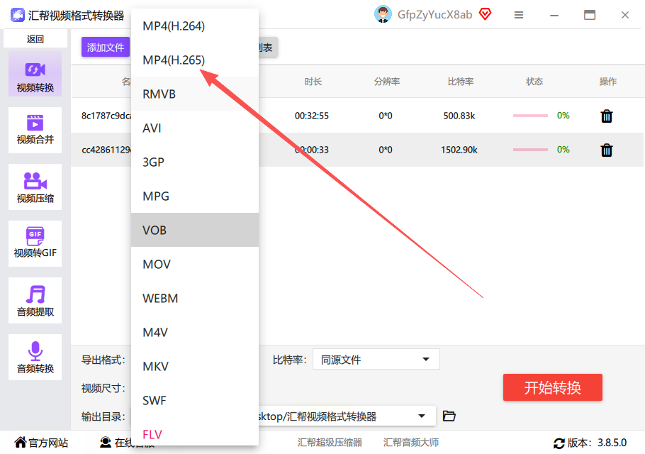 软件名称:汇帮视频格式转换器