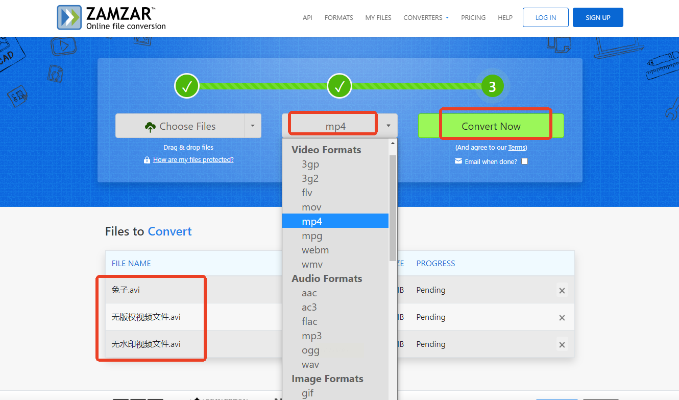 1. Zamzar:全格式支持,邮件通知结果