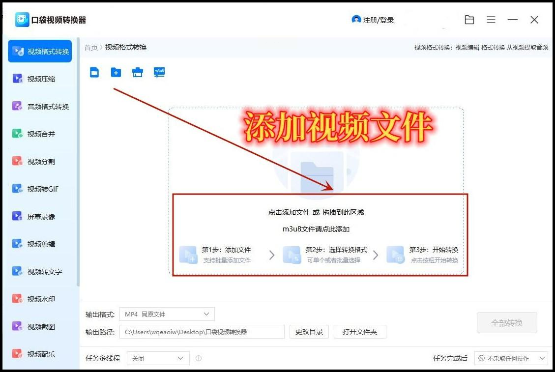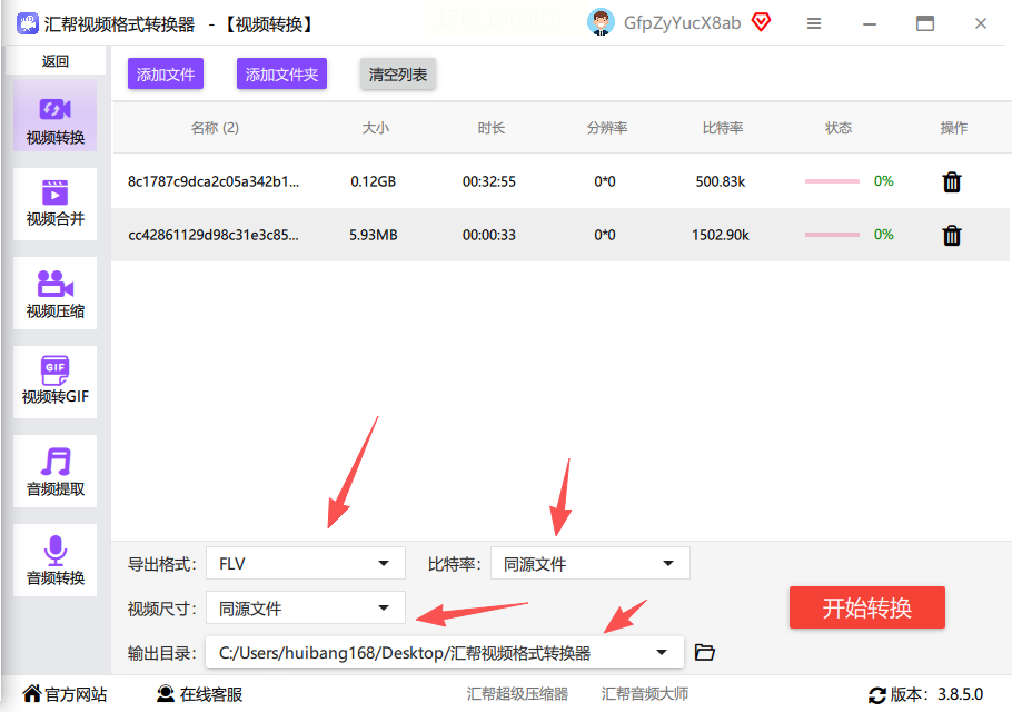 步骤二:通过添加文件或拖拽方式导入FLV视频,支持批量操作