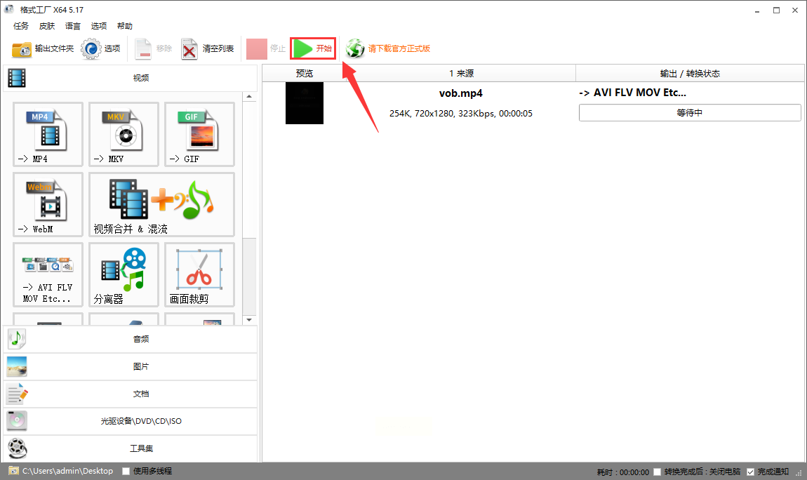 确认所有参数无误后,点击界面右下角的"开始转换"按钮。转换过程中会显示进度条,完成后软件会自动提示转换成功,同时生成新的FLV文件。