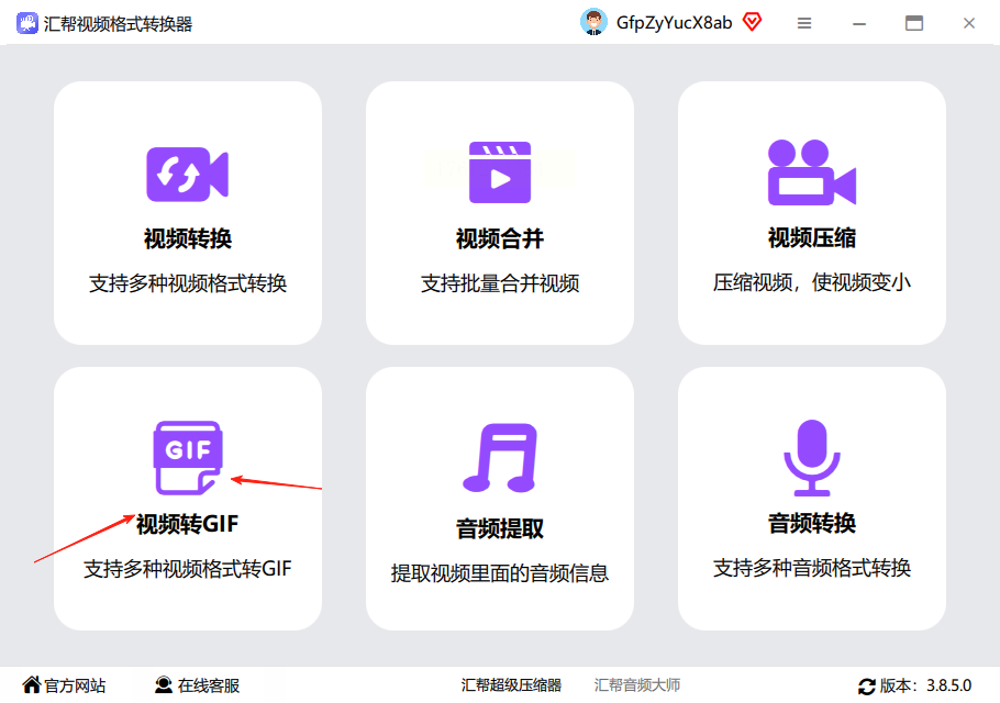 步骤一:下载并打开汇帮视频格式转换器。在主界面中,找到并点击“视频转GIF”选项。这一步是进入转换功能的关键,确保软件已正确安装。