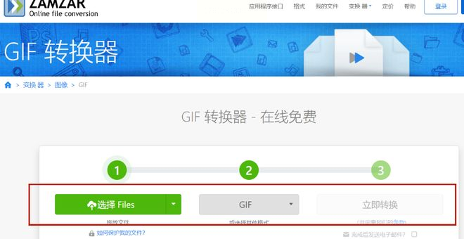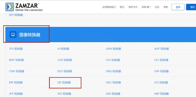步骤一:访问Zamzar网站,在转换器选项中找到“GIF转换器”并点击进入。