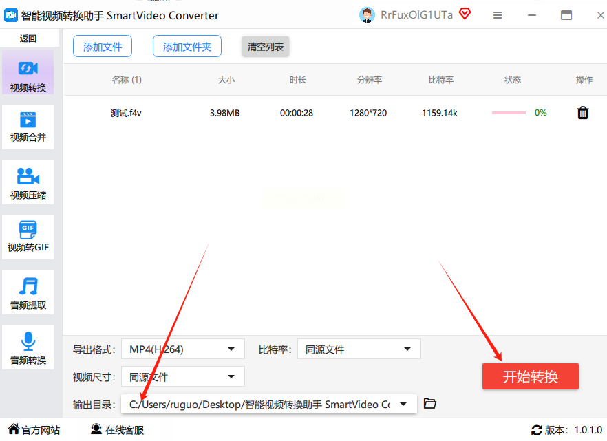 点击“存储路径”按钮,最后选择“开始转换”后,系统会在后台处理视频。