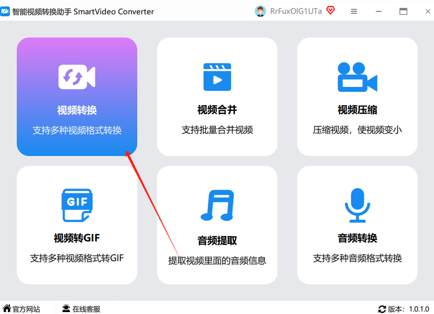 在首页选择“视频转换”功能进入转换页面。