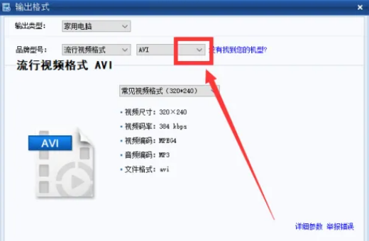 - 在“输出格式”下拉菜单中,找到并选择“AMV”格式;