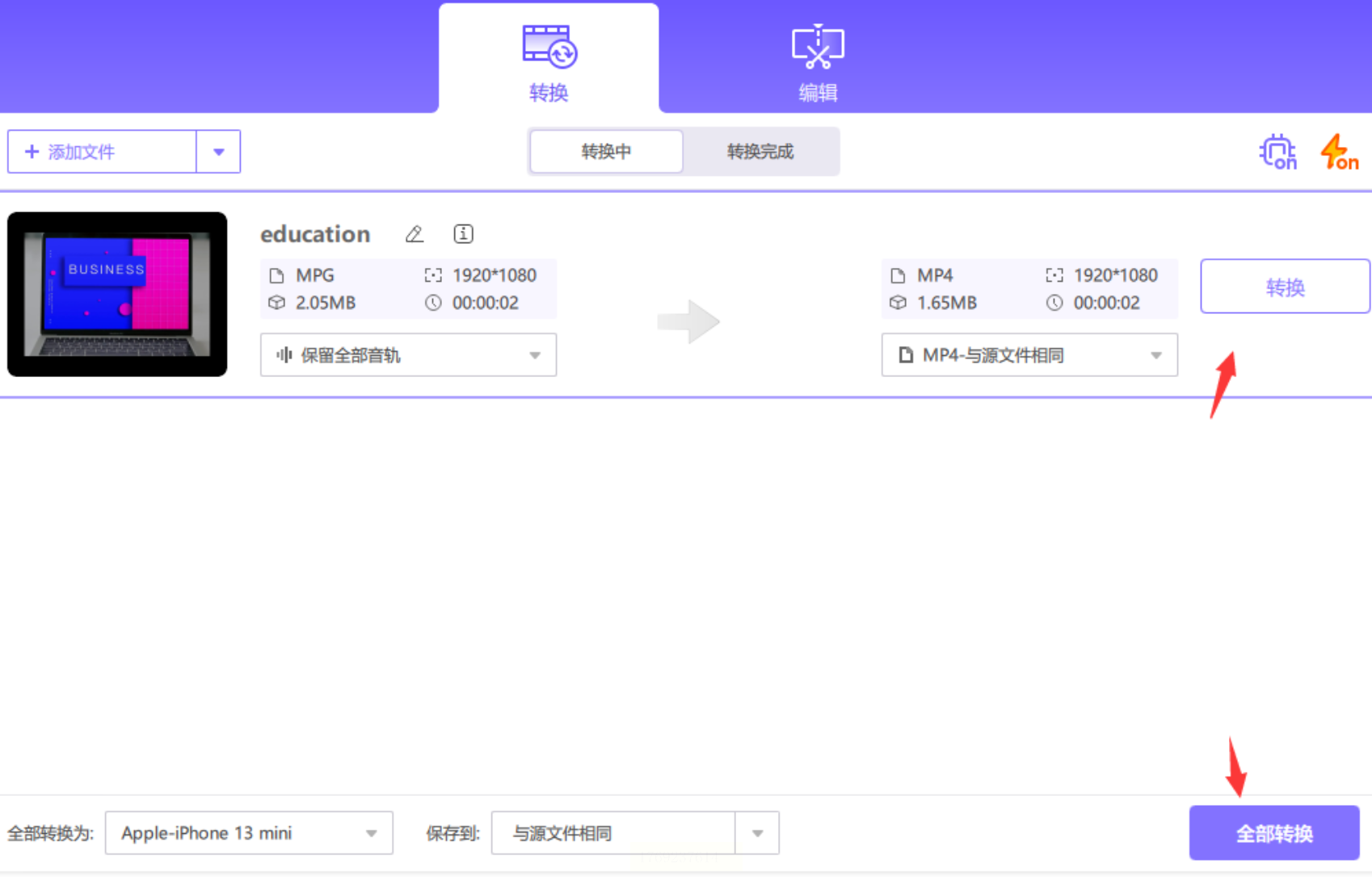 设置完成后,找到视频文件对应的“转换”按钮(可能是每个文件单独一个,也可能是一个总的“全部转换”按钮),点击它。然后耐心等待软件处理完成即可。