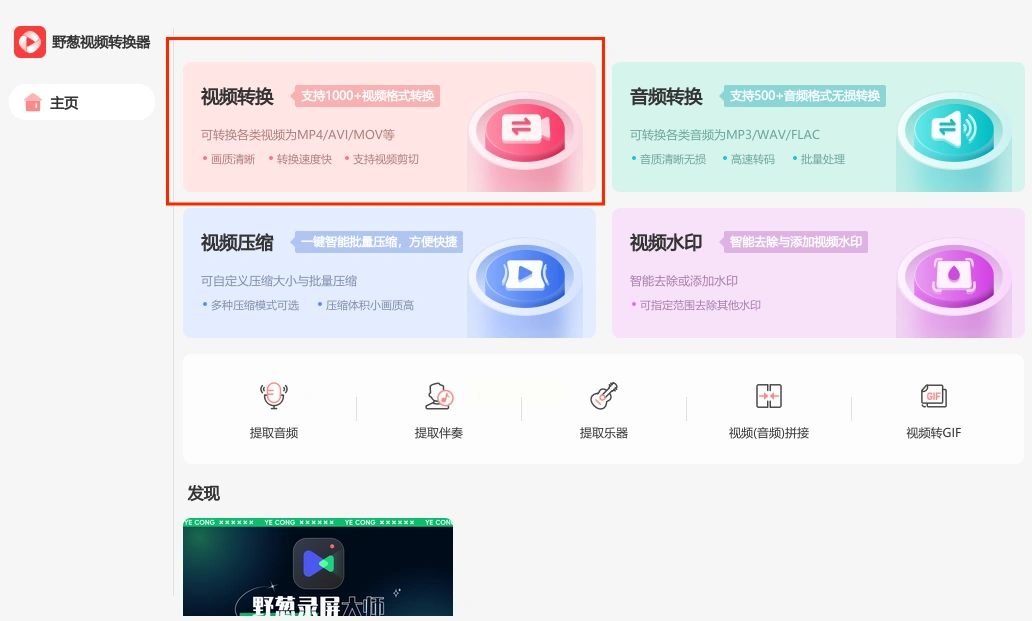 1. 启动软件:打开工具后,在功能区选择"视频转换"模块