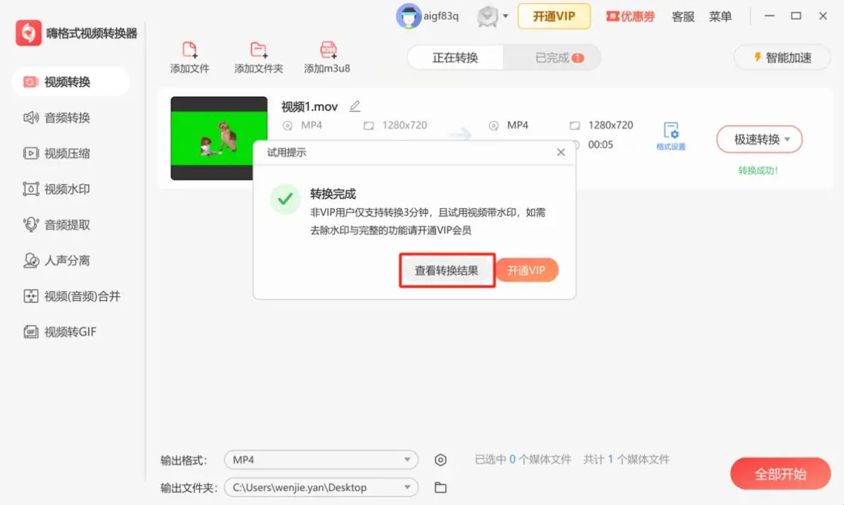 4. 启动转换:点击右下角"全部转换",转换完成后自动打开文件目录