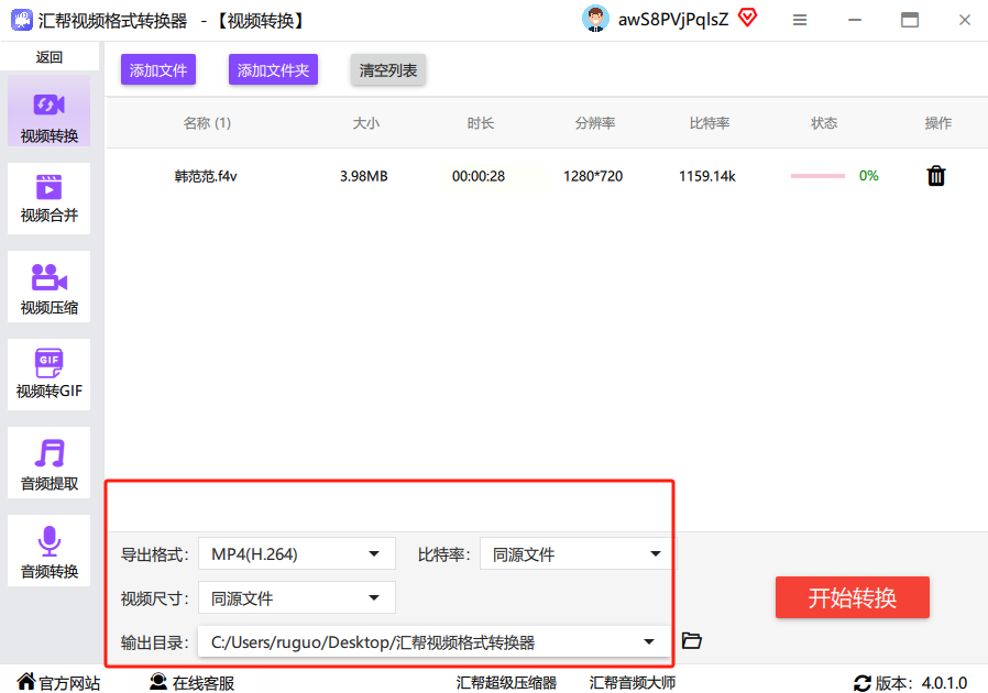 软件名称:汇帮视频格式转换器