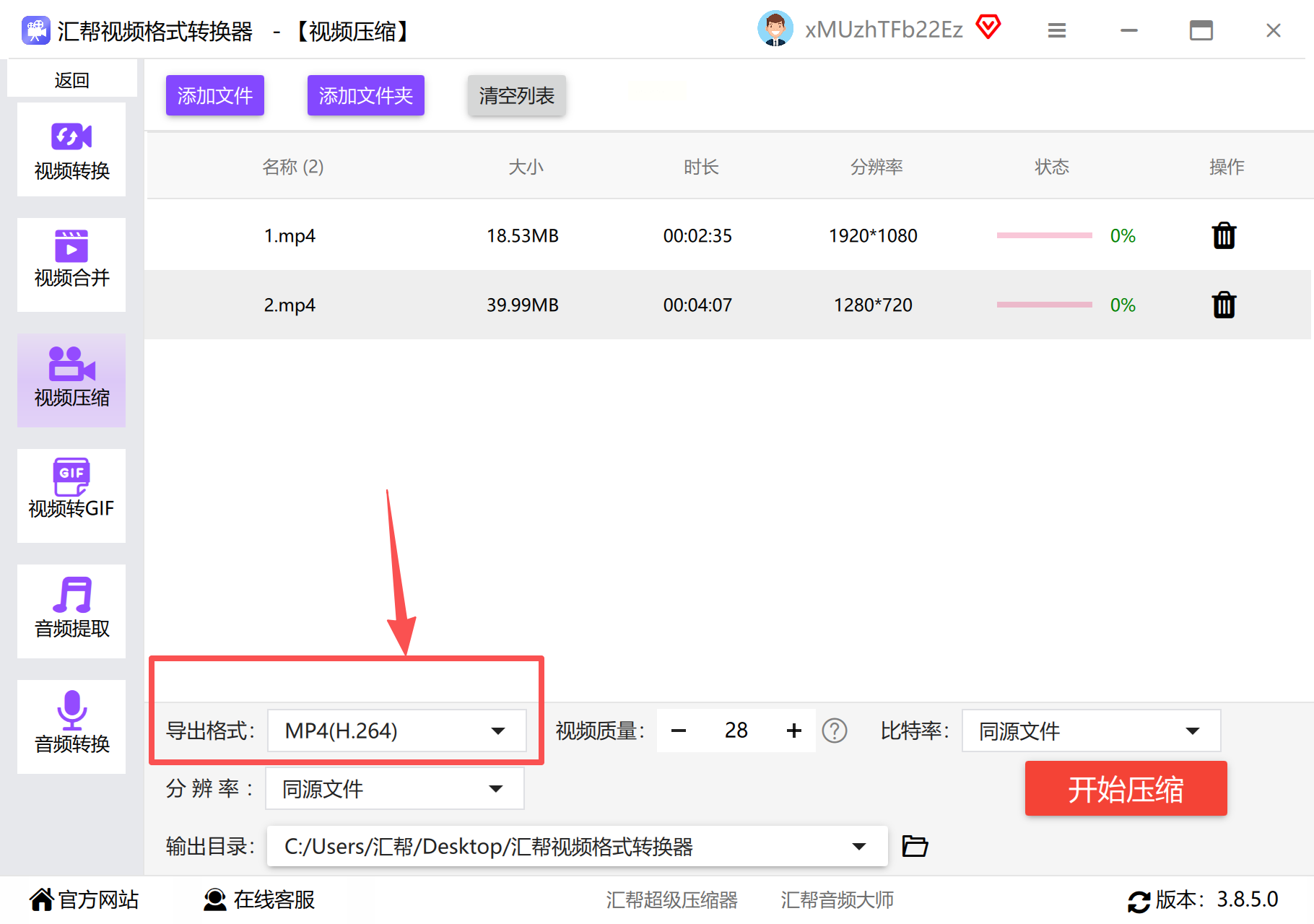 步骤三:在输出设置中,确保输出格式保持为MP4(通常默认编码为H.264,这是一个在清晰度和体积间平衡得很好的通用编码)。如果源视频是其他格式,你也可以在这里直接完成转换,一举两得。