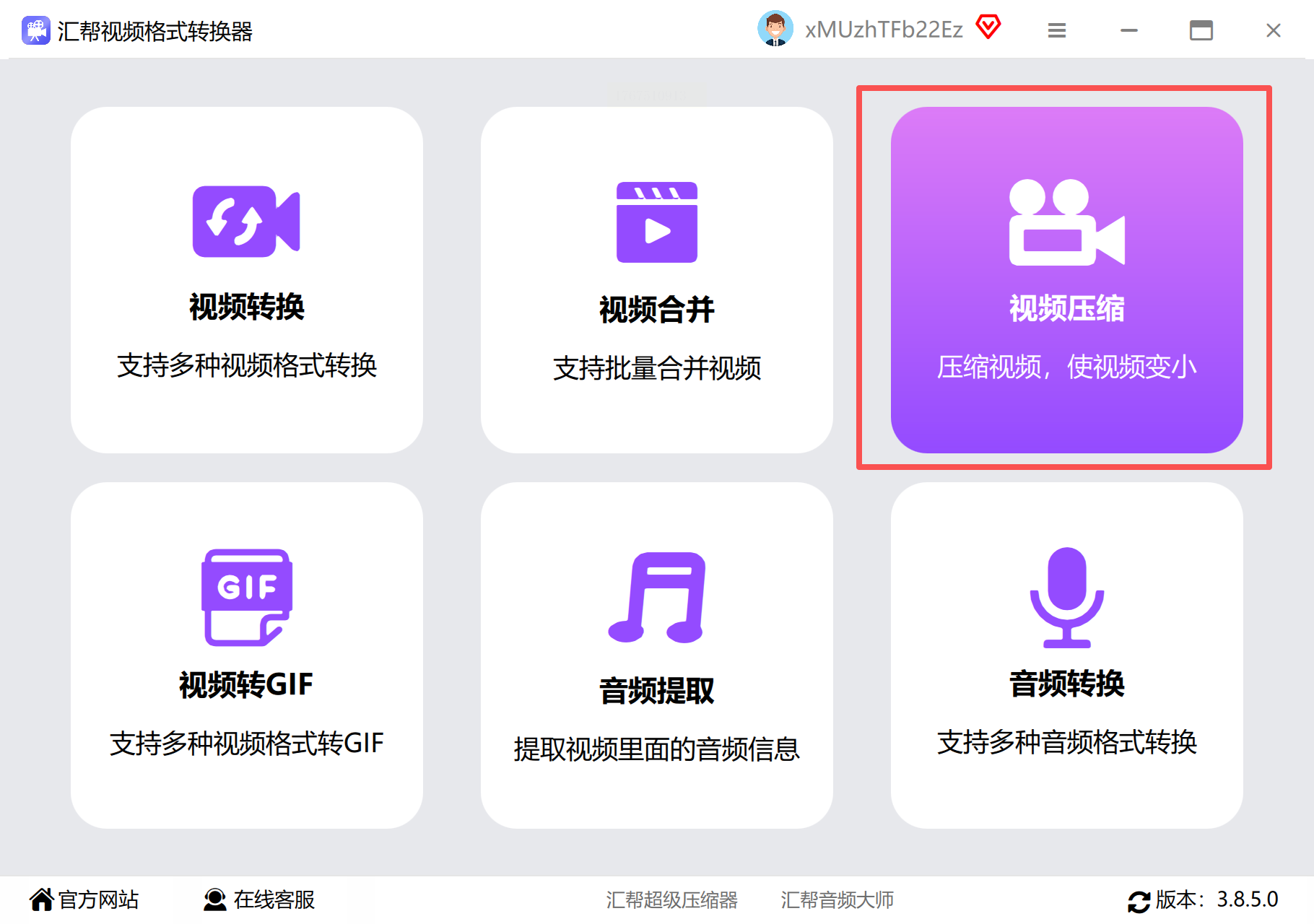 步骤一:打开软件,在首页的功能菜单中,明确选择“视频压缩”选项进入专属操作页面。