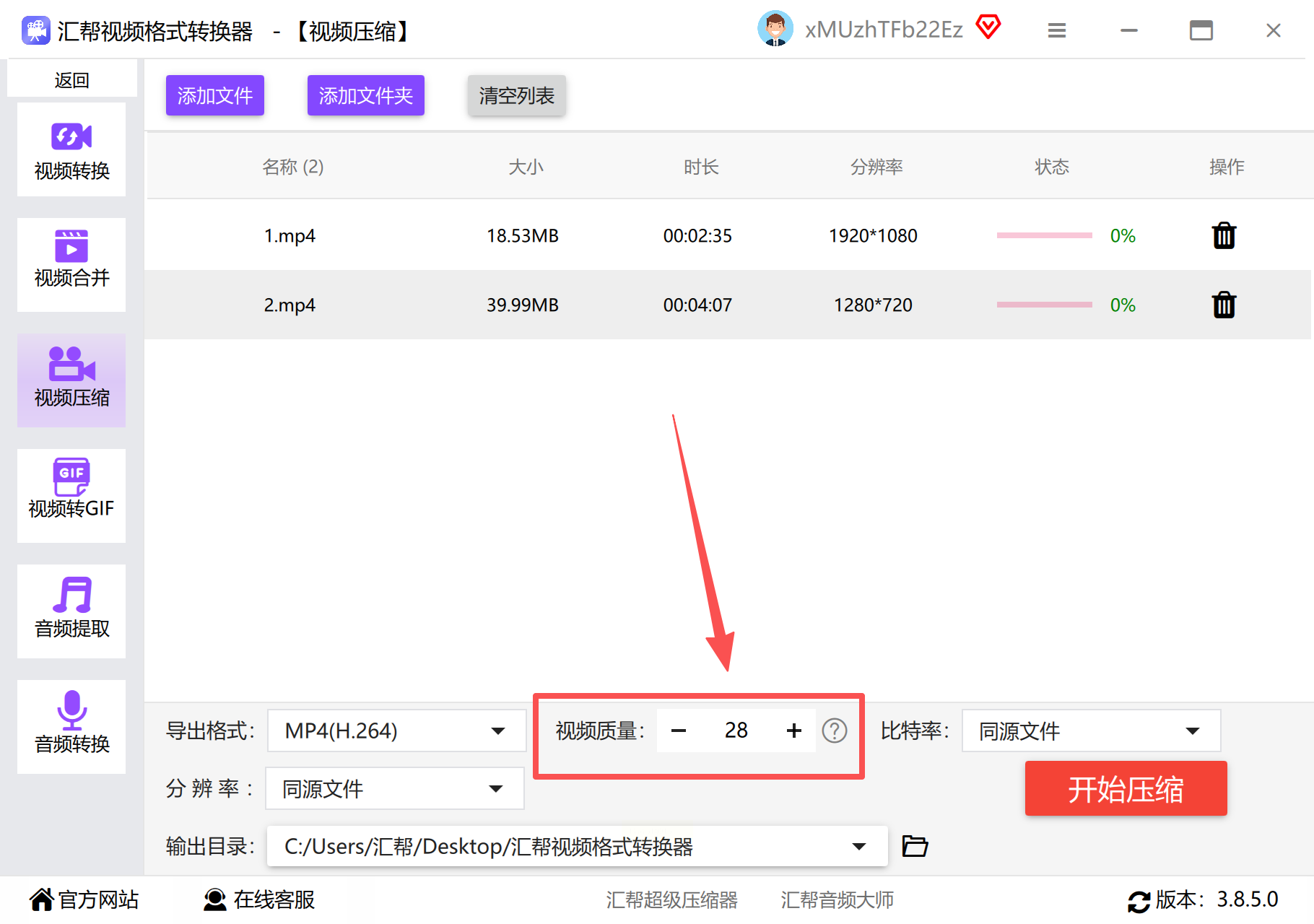 步骤八:确认所有设置无误后,点击“开始压缩”或“全部开始”按钮。在任务执行过程中,你可以清晰地看到每个视频的压缩进度。