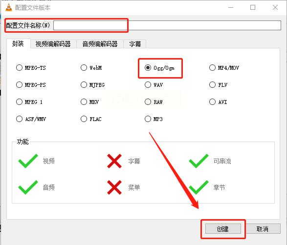- 点“转换/保存”按钮,在弹出的“转换”窗口里,点击“配置文件”下拉菜单,选“OGG Theora + Vorbis”(如果没找到,就选“音频或视频文件”然后手动设置编码)。