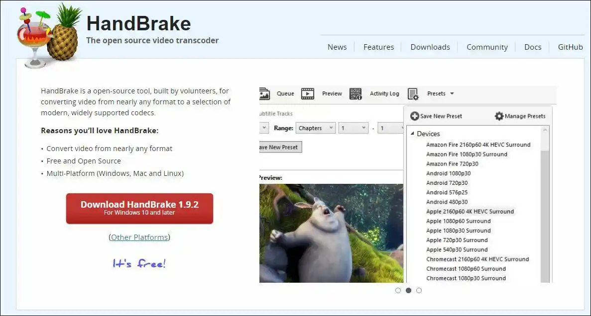 三、HandBrake(免费开源工具)