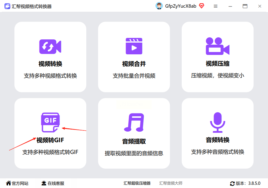 1. 启动软件:打开汇帮视频格式转换器,在功能列表中选择“视频转GIF”模块,轻松实现mp4做成gif。