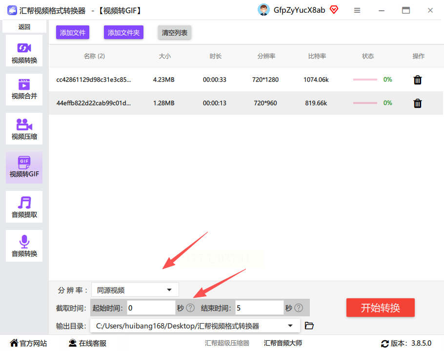5. 开始转换:确认参数无误后,点击“开始转换”按钮,软件会在保留原视频文件的基础上,生成新的GIF文件。