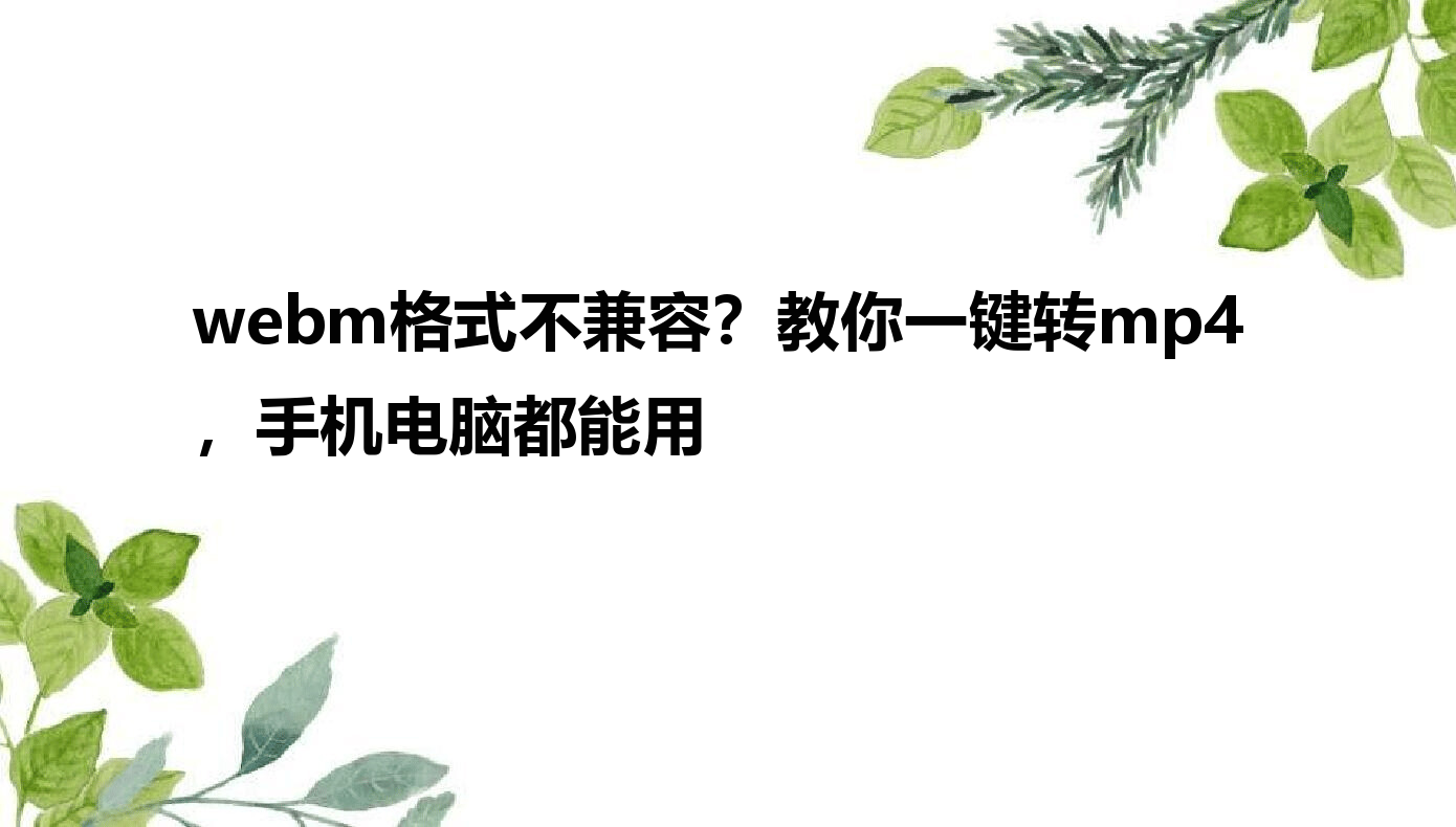 在当今数字化时代,视频内容已成为我们日常生活和工作中不可或缺的一部分。然而,不同设备和平台对视频格式的支持千差万别,这常常给用户带来诸多不便。特别是WebM格式,尽管在视频质量和文件大小方面表现出色,却在兼容性上存在明显短板。相比之下,MP4格式凭借其广泛的适用性,几乎成为通用标准。为了帮助用户轻松解决格式转换的难题,提升视频使用的灵活性和效率,我们将深入探讨几种实用的转换方法。接下来,让我们从一款功能强大的工具开始,逐步掌握如何高效地将WebM转换为MP4。
