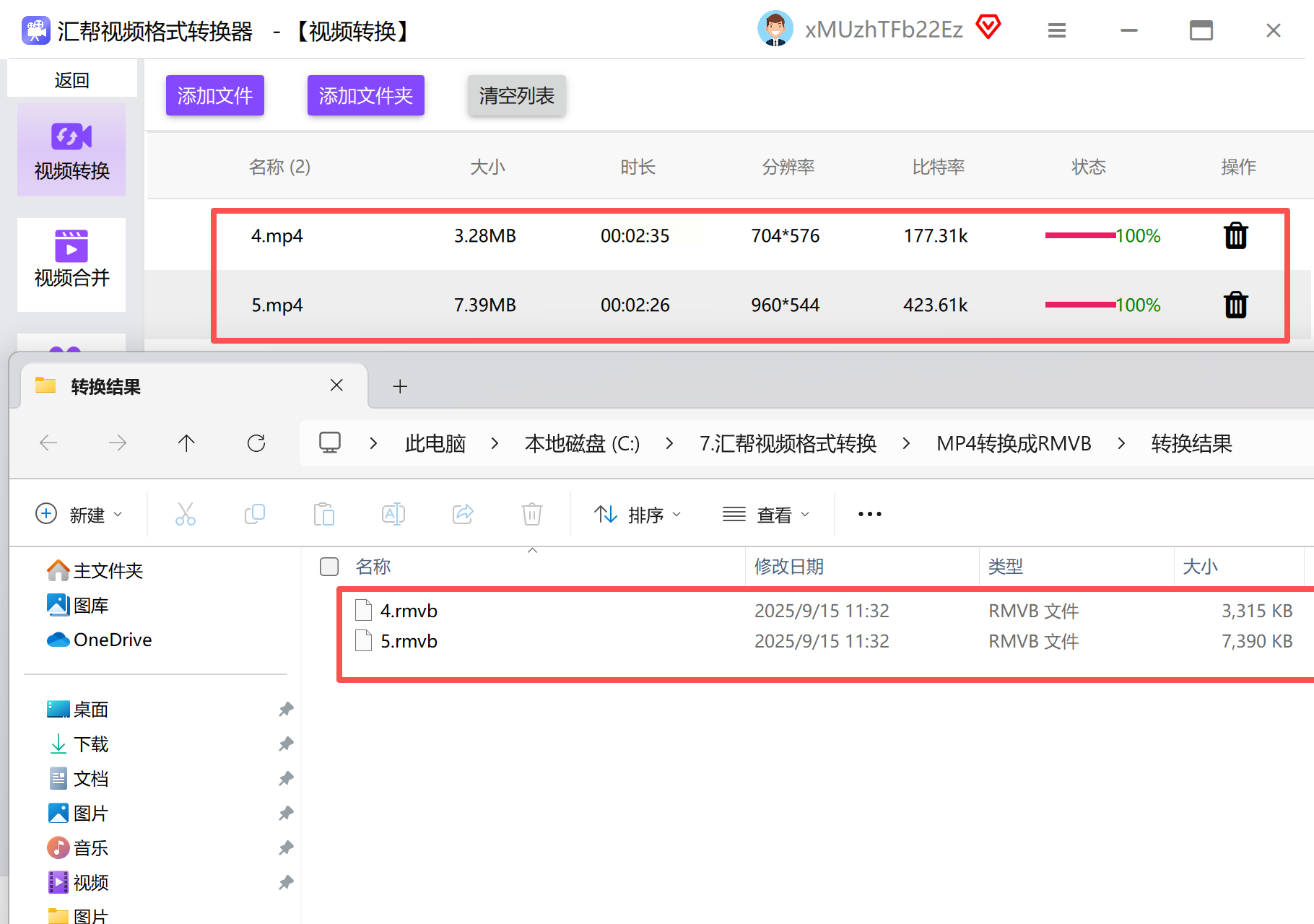 8.打开文件夹,检查MP4转换成RMVB格式是否转换成功,如果没有,重复一次,如果还为成功,反馈客服。