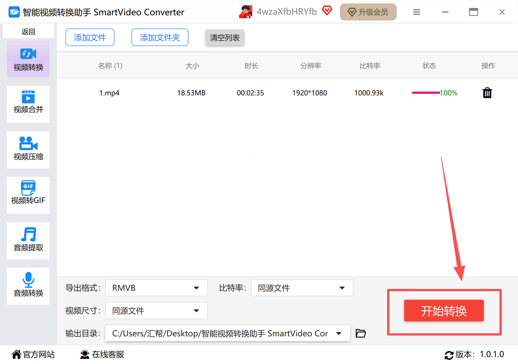 6. 验证结果:转换完成后,软件会自动生成同名的RMVB文件,体积通常是原MP4的30%-50%。建议用VLC播放器预览,确认画质和声音正常。