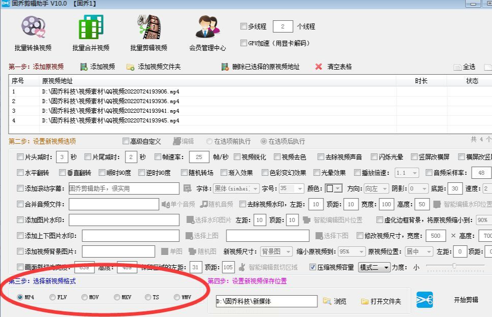 4. 然后设置输出格式,比如MP4,还能选分辨率,比如720P或480P,码率调小一点,比如原来5000kbps改成2500kbps。