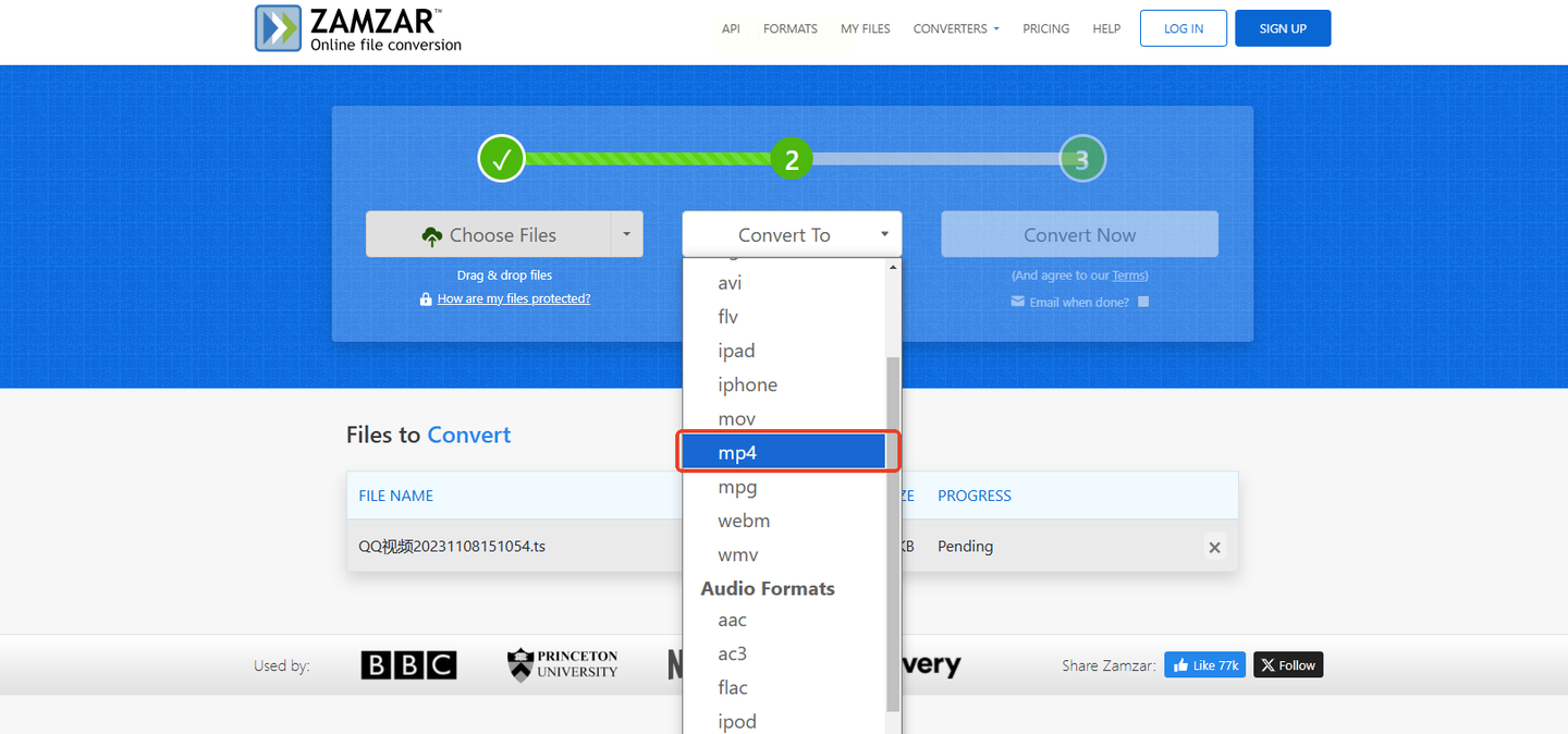 Zamzar是一款在线格式转换平台,无需下载安装软件,通过浏览器即可使用。适合转换少量文件且对操作简便性要求高的ts转化为mp4需求。