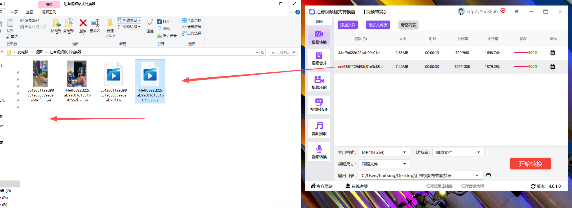 确认所有参数无误后,点击右下角的“开始转换”按钮。转换进度会实时显示,完成后软件会自动提示,此时可直接打开输出文件夹查看ts转化为mp4后的文件。