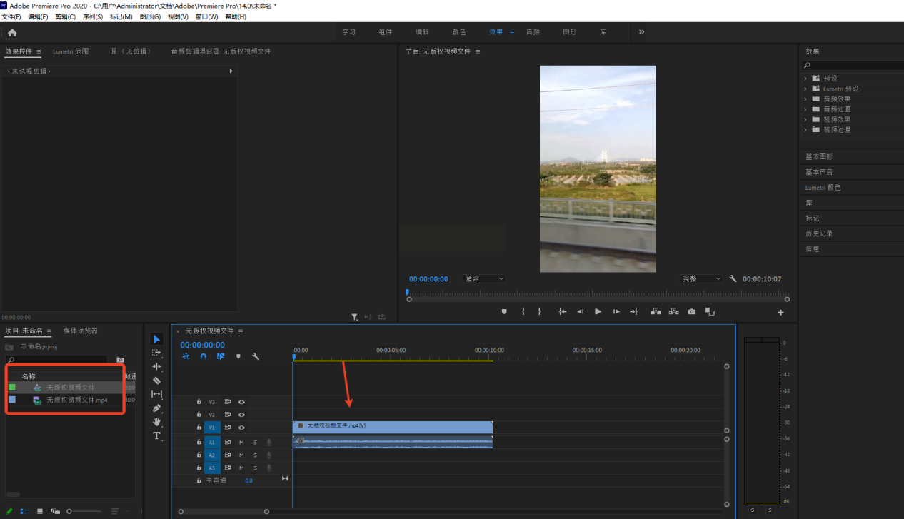 2. 拖到时间轴,按Ctrl+M打开导出窗口