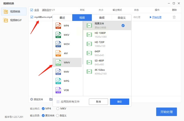 步骤六:软件开始运行,转换完成后,你会在输出目录看到新的WMV文件。原来的MP4文件依然保留在原始位置,不会受影响。