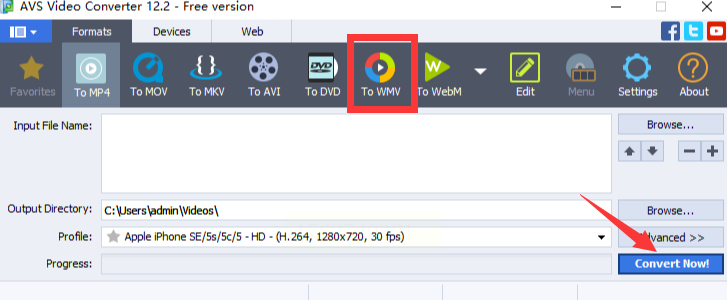 2. 在"输出格式"中选"WMV",软件会自动优化参数