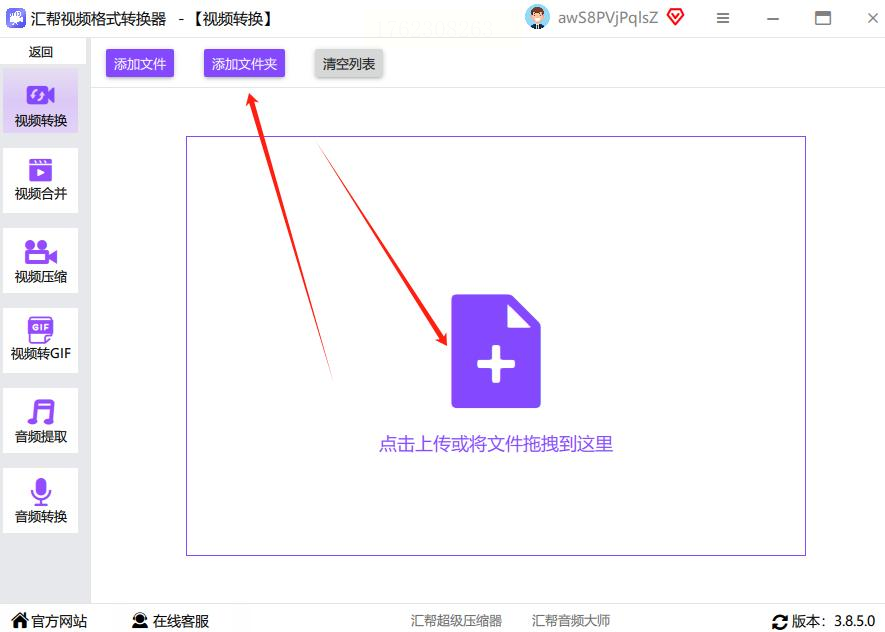 步骤2:点击“Add Files”上传MP4文件,或者直接把视频拖到网页区域。