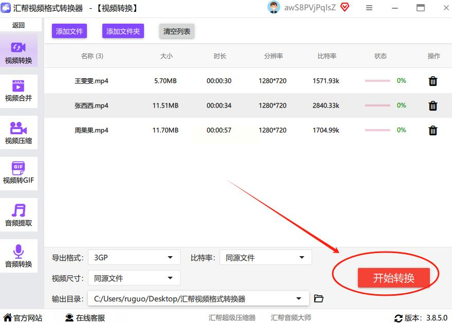 步骤3:在转码页面选3GP格式,根据需要调整参数,最后点“开始”即可。这种方法适合对画质要求不高的场景,转换速度也很快。