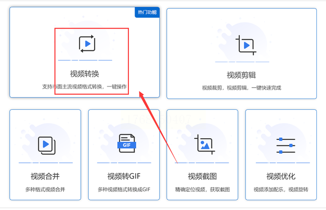 步骤一:运行软件,在首页功能菜单中选择“视频转换”。该模块支持包括MP4、MOV、AVI在内的数十种常见格式互转。