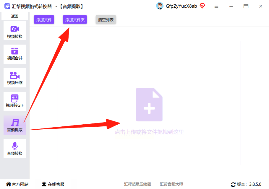 1. 打开汇帮视频格式转换器,在首页左侧找到“音频提取”选项点进去