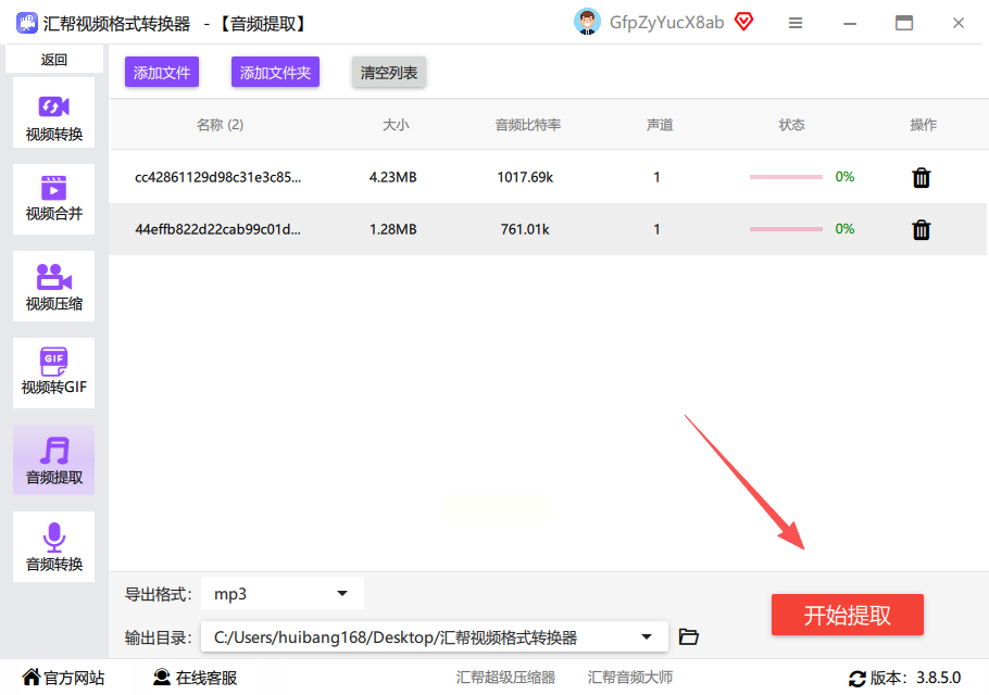 汇帮视频格式转换器安全不泄露内容,从安装到导出全程本地处理,导出的音频文件不会上传到服务器,不用担心隐私问题。而且功能很全,不管视频多大、什么格式(MP4/AVI/FLV等),都能一键提取成MP3,轻松完成视频提取声音,新手也能轻松操作。