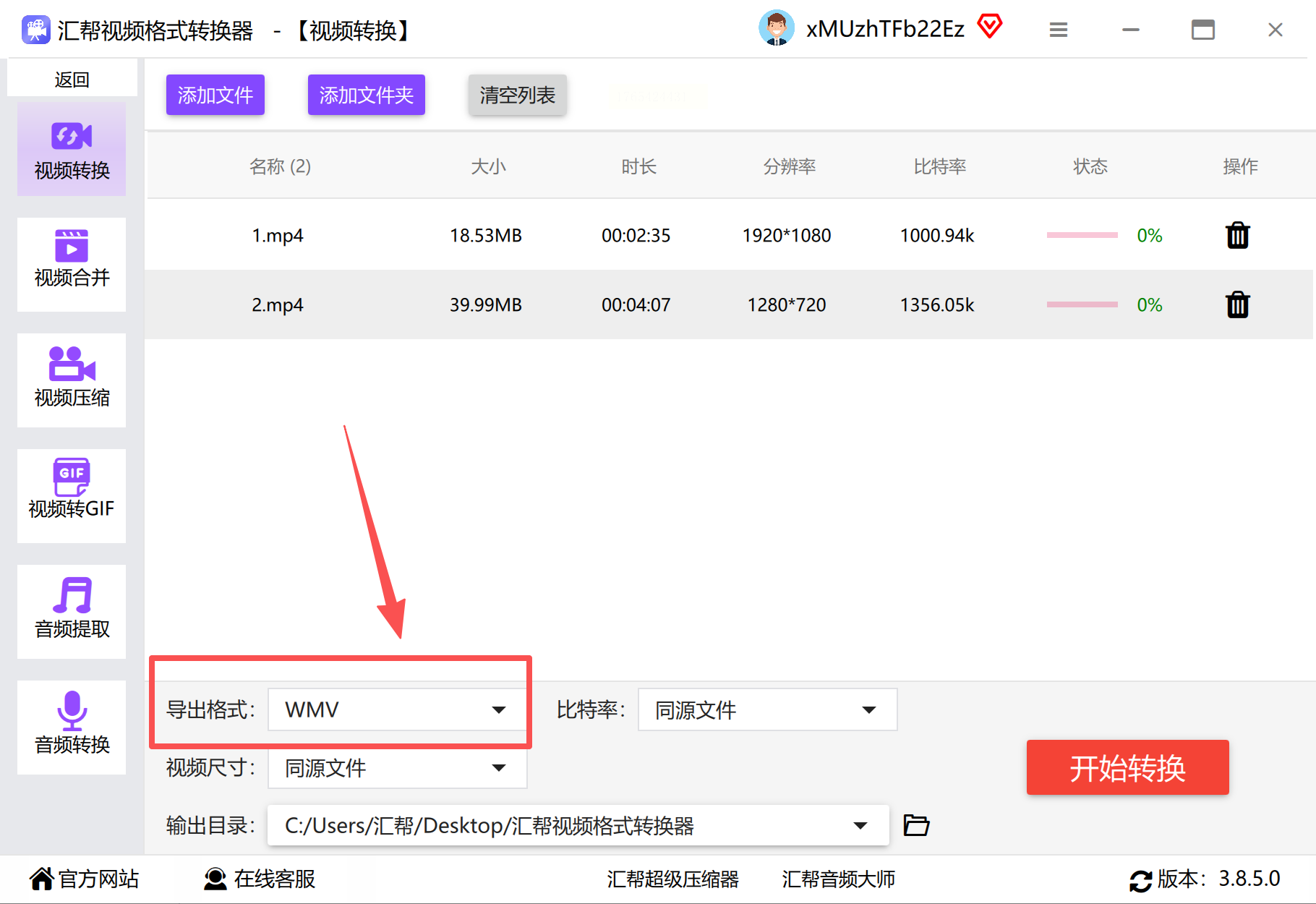软件名称:汇帮视频格式转换器