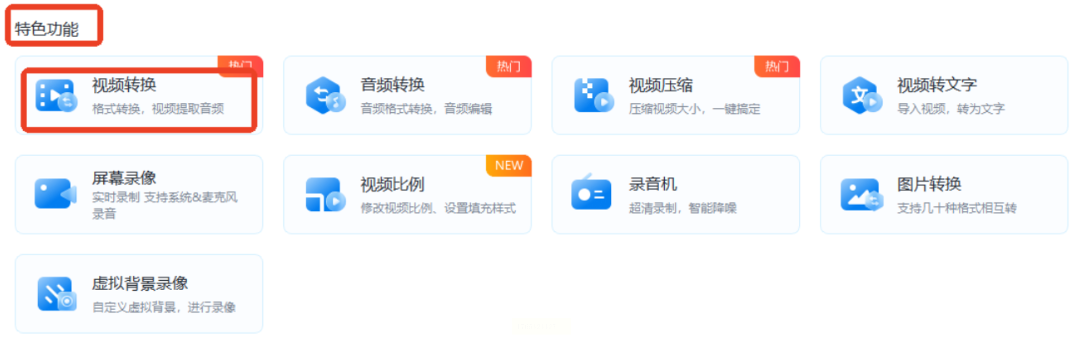 步骤一:启动软件后,在主界面找到并点击“视频转换”功能模块。