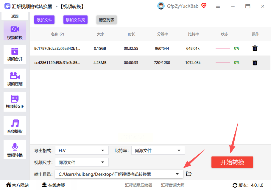 汇帮视频格式转换器是一款操作简单的工具,适合快速完成格式转换,不管是单个还是批量mp4转成flv文件,都能高效搞定。以下是具体步骤: