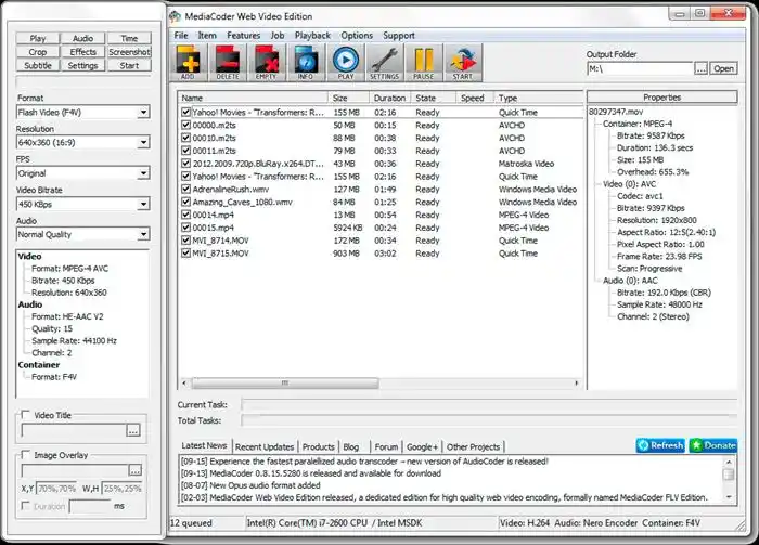 Media Coder是专业级音视频转换工具,支持细致的参数调整,比如分辨率、比特率、帧率等。适合需要优化画质或调整编码参数的用户,做mp4转成flv文件时能精准控制效果。但界面相对复杂,初学者可能需要一点时间熟悉,转换速度会根据参数设置和电脑性能有所不同。