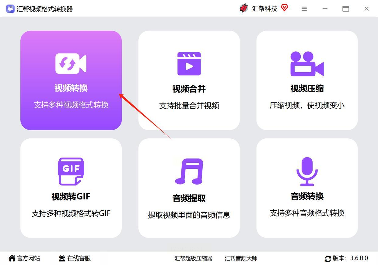 2. 软件启动后,首页通常就是核心功能,直接点击“视频格式转换”这个选项。