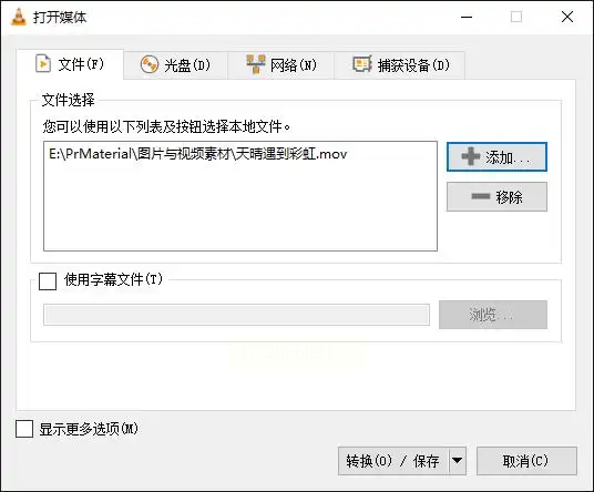 打开VLC → 点击菜单栏「媒体」→「转换/保存」→ 「添加」导入MP4文件 → 「转换/保存」→ 选择输出格式为“MOV”并设置路径,点击“开始转换”