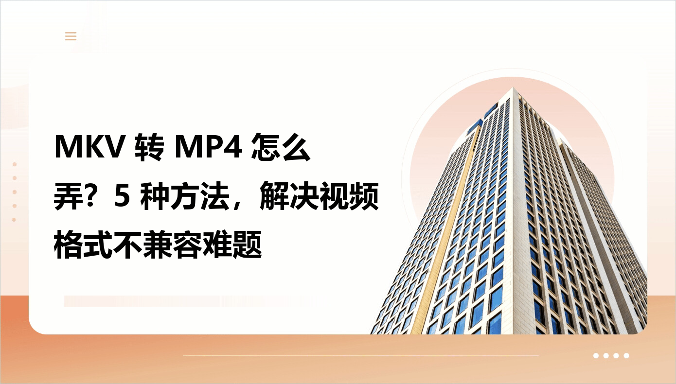 在数字内容日益丰富的今天,我们常常会遇到不同格式视频文件的兼容性问题。比如MKV格式虽然功能强大,能封装多种音视频编码和字幕轨道,但在一些设备或播放器上却容易出现无法播放的情况。而MP4格式凭借其出色的兼容性、较小的文件体积和广泛的设备支持,成为了视频分发和播放的主流选择。当我们需要将MKV文件转换为MP4格式时,选择合适的工具和方法就显得尤为重要。接下来,我将为大家详细介绍5种实用的视频转换方法,帮助大家快速解决格式转换难题。
