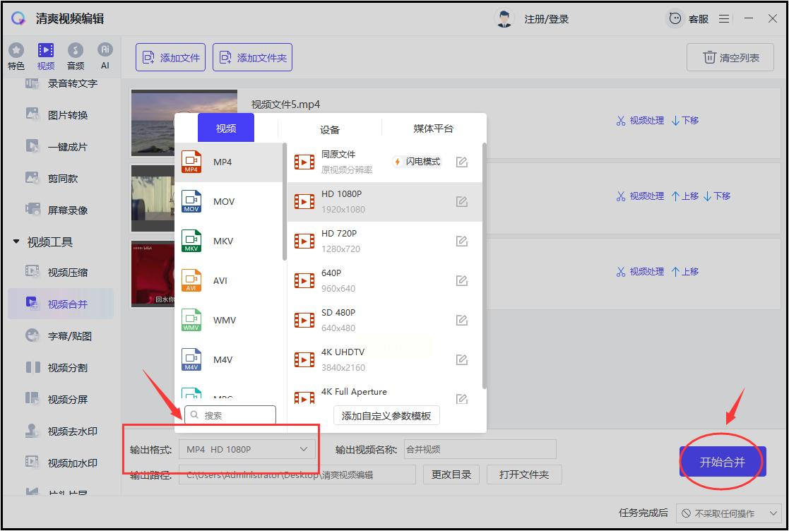 6. 猛击【开始合并】按钮,进度条跑完就是成品
