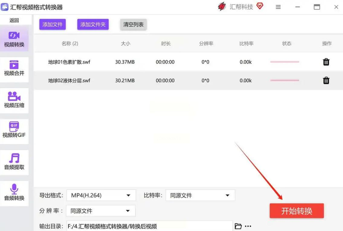 二、汇帮视频格式转换器:适合多文件批量处理